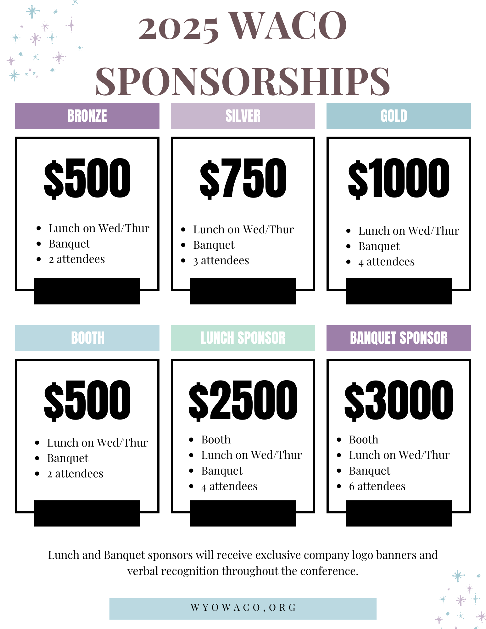 Wyoming Association of County Officers 2025 WACO Conference Rock Springs, WY Conference Registration Agenda Sponsorships